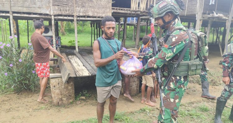 Satgas Yonif 753/AVT melalui Pos Belemu melaksanakan kegiatan anjangsana dengan membagikan bantuan sosial kepada masyarakat Kampung Belemu, Distrik Batom, Kabupaten Pegunugan Bintang, Papua, Minggu (19/4/2026).